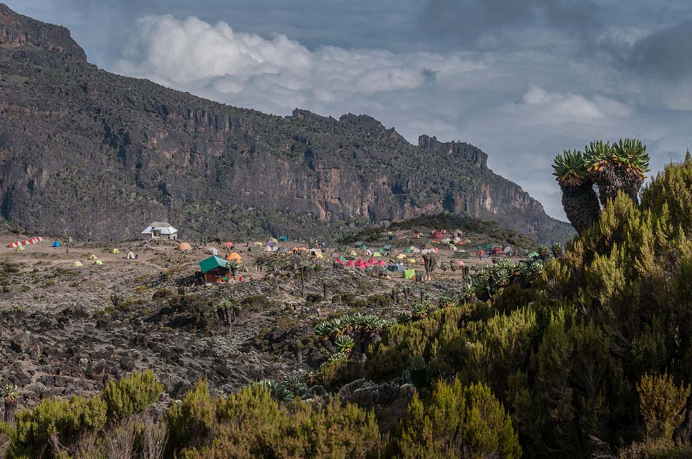 Day three is a short day hike after the late breakfast you will start climbing the famous wall “Great Barranco wall” 4200m at the top the down-hill to Karanga Camp 3,995amsl via vegetation – Moorland. Thereafter leisure, dinner and overnight at the camp.