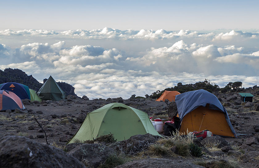 Barafu Camp is situated on a rocky and desolate ridge, exposed to the elements but with glorious panoramic views from 15,000 feet up. You’ll be gazing at clouds below your feet and ice fields and the summit above you. It’s a tough environment for you to prepare your equipment and your mind-set for your final ascent tonight. Grab as much rest as you can before your 11pm push for the Uhuru Peak summit.
