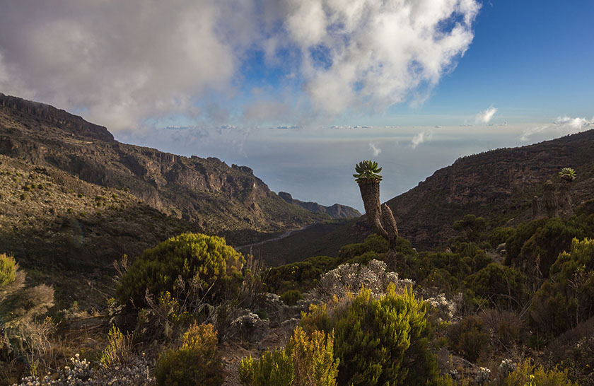 The 8-day program of hiking Kilimanjaro up the Lemosho Route promises something new every day. On the third day, you depart from Shira 1 Camp (3650amsl) towards the Shira 2 Camp (3800amsl). This short-distance trekking is smooth and comprises mild trekking experiences, with the effervescent flora of the Kilimanjaro moorland accompanying you throughout.